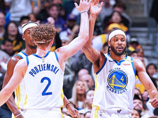 其实勇士下赛季首发阵容不难猜:库里+梅尔顿+巴特勒+追梦格林+霍福德,其他人替补席待命。但勇士又老又矮的阵容,怎么去和西部其他球队竞争?来看两组数据,上赛季季后赛打火箭和森林狼,勇士百回合篮板率比对手低4.4%,球队赢分最多的一套阵容,是三位老将带着希尔德和波杰姆斯基,65分钟赢了14.9分,但是篮板率输了14.6%,全靠三分球(命中率比对手高11.5%)。但相比于常规赛三分球命中率36.4%,勇士季后赛三分球命中率是35.3%,还下降了!很容易理解,三分球有追分能力,但绝对没稳定性!